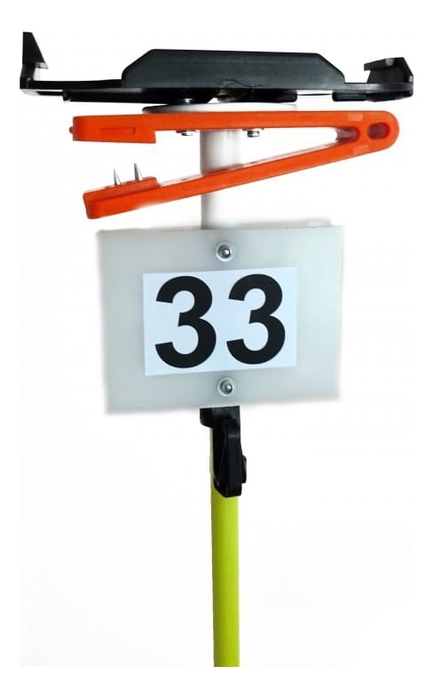 Lekki stojak do biegów na orientację wykonany z włókna szklanego, wyposażony w klasyczny perforator, uchwyt na stację SportIdent (SI) oraz tabliczkę na numer Punktu Kontrolnego (PK)